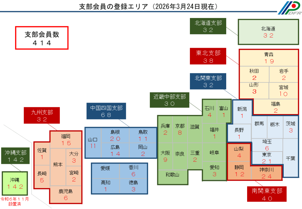 支部会員の登録エリア(2026年3月24日現在)